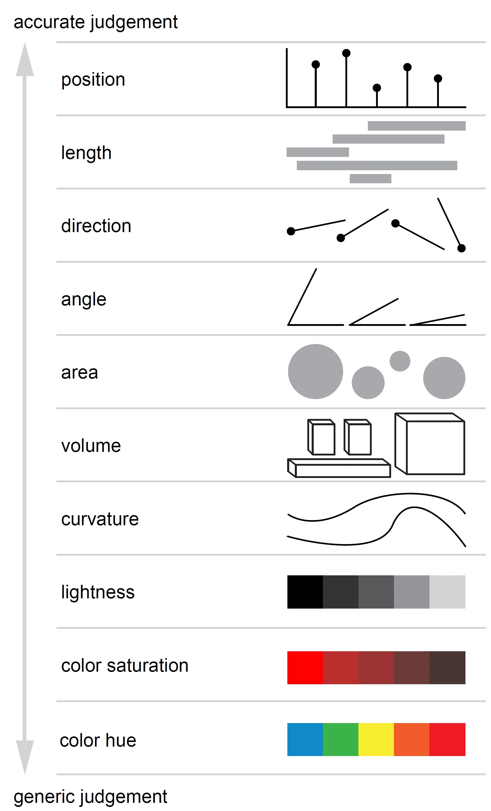 Elementary tasks ordered by accuracy (adapted from Cleveland & McGill, 1984; Journal of the American Statistical Association).